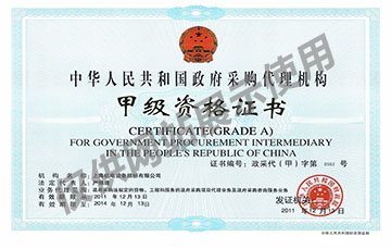 政府采購代理機構甲級資格證書